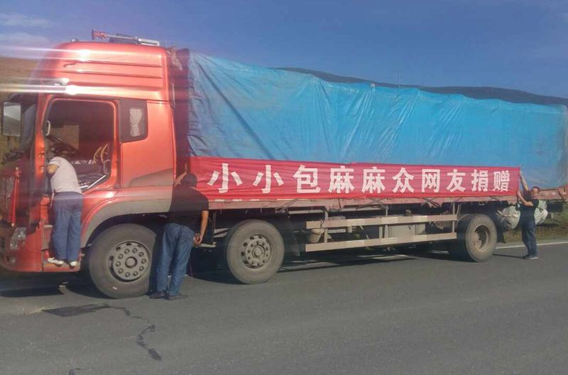 第2辆车满载棉被、被褥等等,也送到啦。