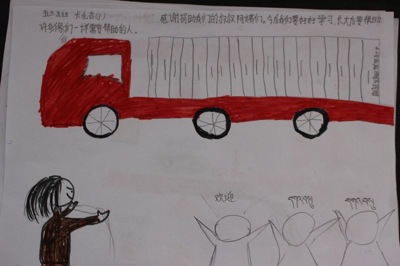 志愿者刘永奇开自家车,护送第2辆捐赠物资车到学校,往返行程2000多公里,一路的油费过路费自理,谢谢。