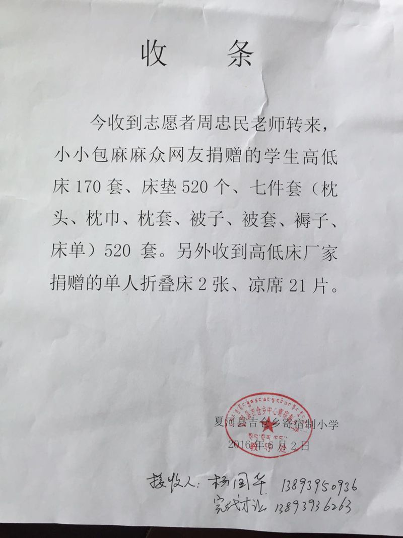 标题: 捐助山区学生寝具(拟小小包麻麻众网友捐助)