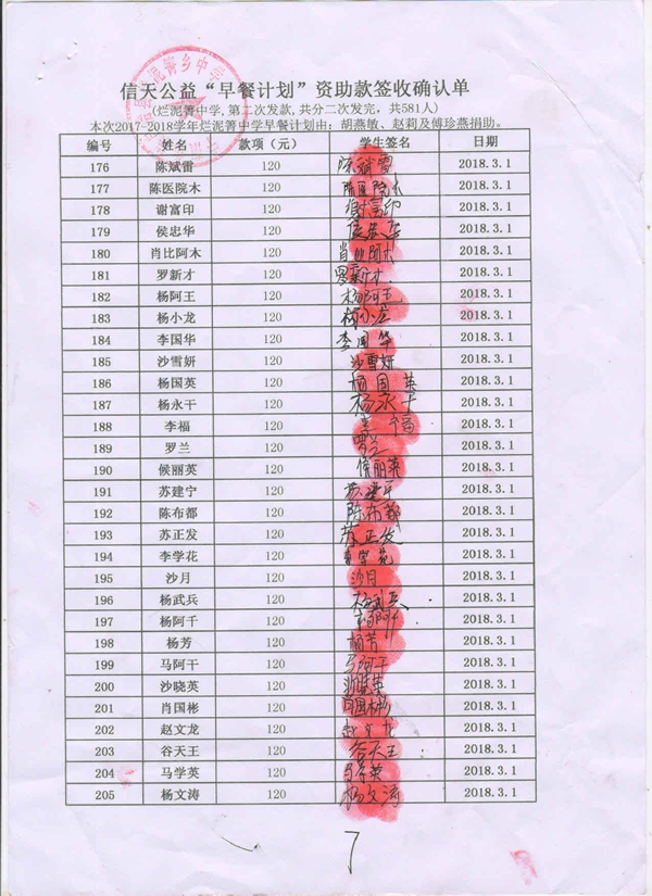信天公益“早餐计划”资助款签收确认单7(烂泥箐中学).jpg