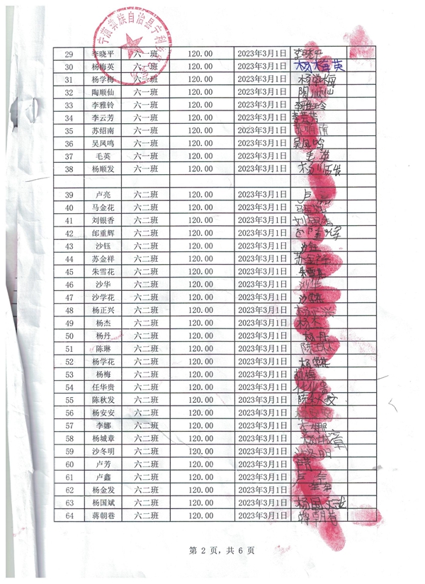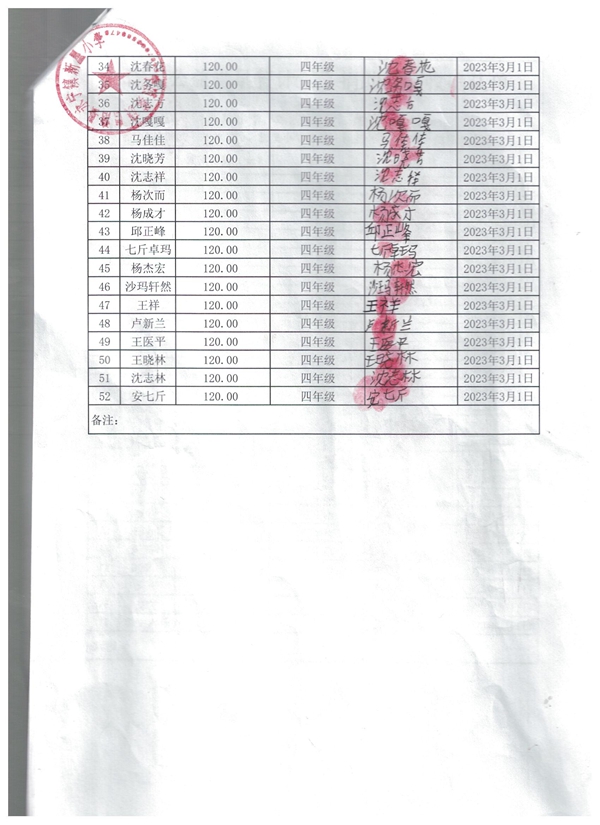 新星小学,2022-2023年下学期早餐计划第二次发款签收单
