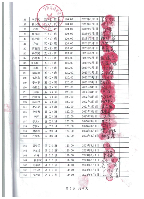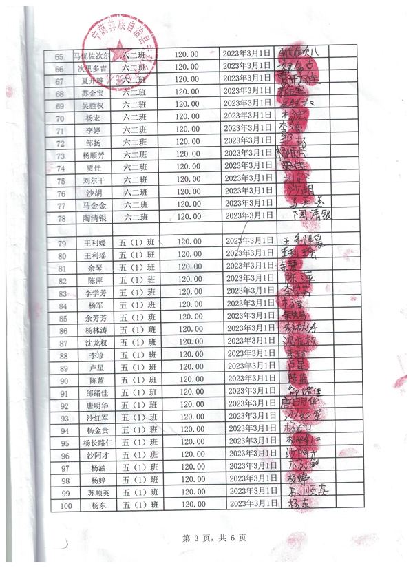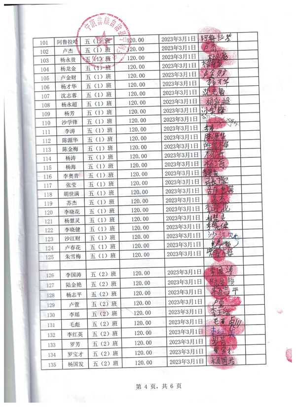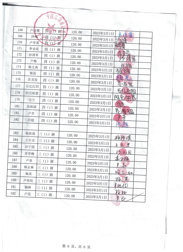 宁利中心完小,2022-2023年下学期早餐计划第二次发款签收单