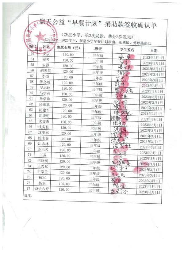 信天公益“早餐计划”签收单5(新星小学).jpg
