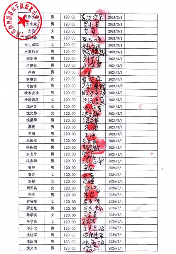 永宁镇新星小学,2023-2024年下学期早餐计划第二次发款签收单