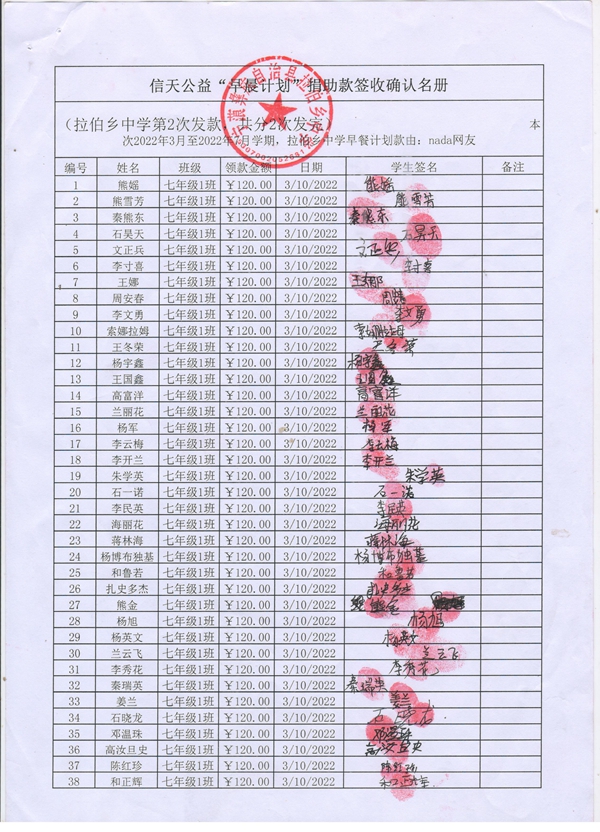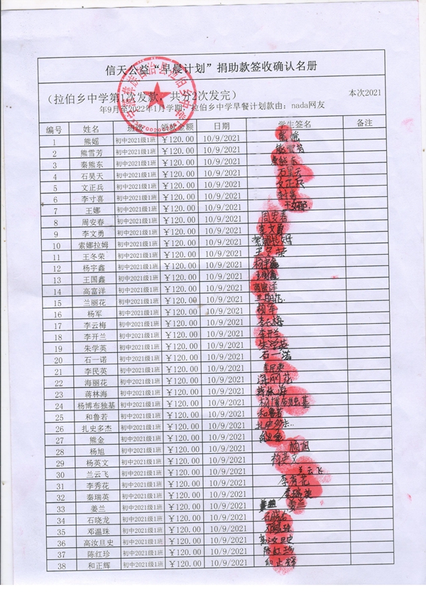 信天公益“早餐计划”签收单2(拉伯中学).jpg