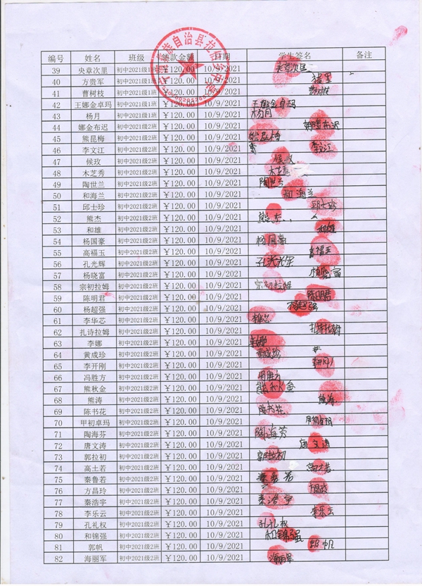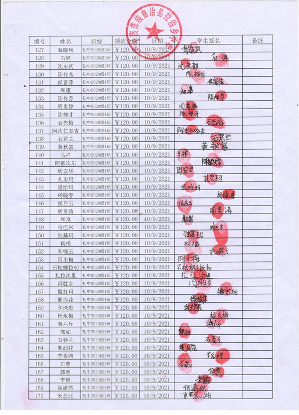 拉伯中学,2021-2022年早餐计划第一次发款签收单