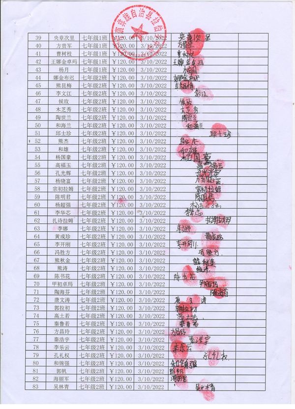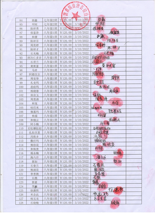 拉伯中学,2021-2022年早餐计划第二次发款签收单