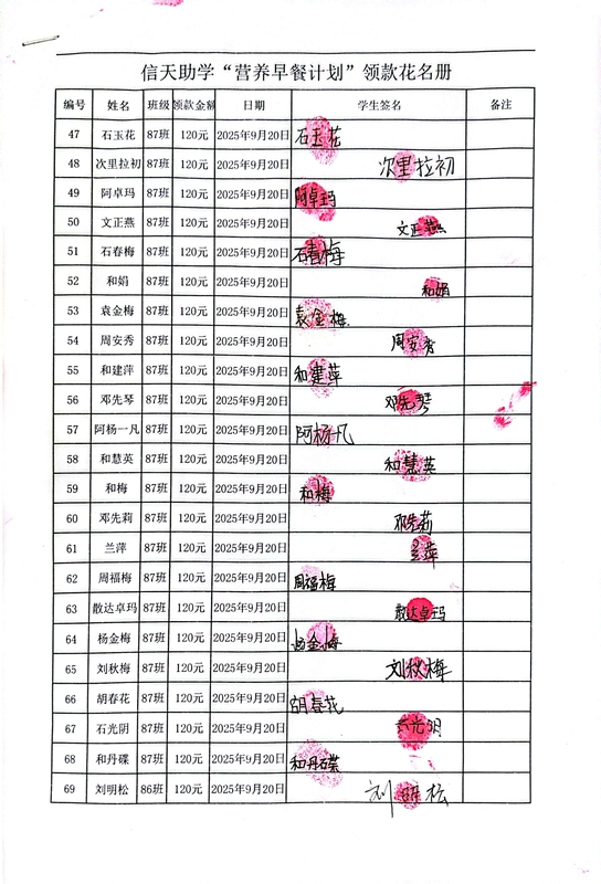 信天公益“早餐计划”签收单4(拉伯中学)87班2.jpg