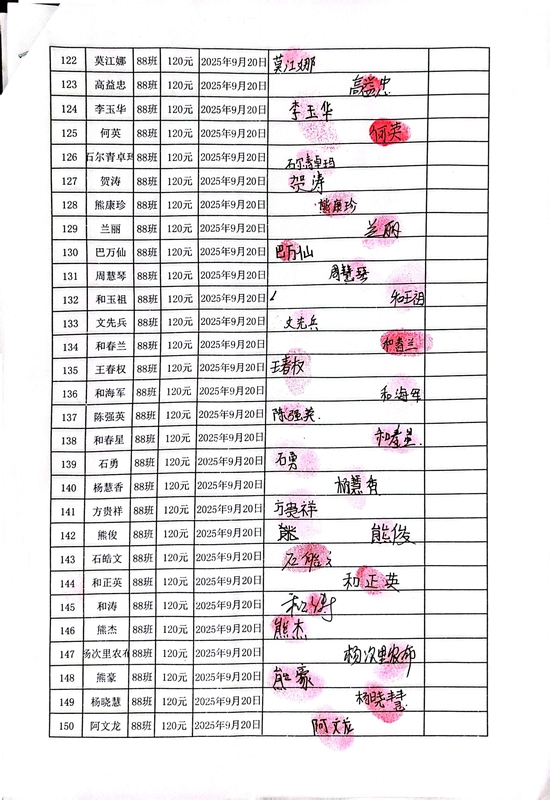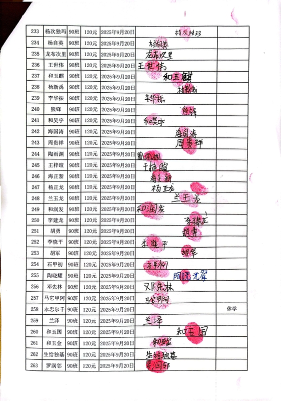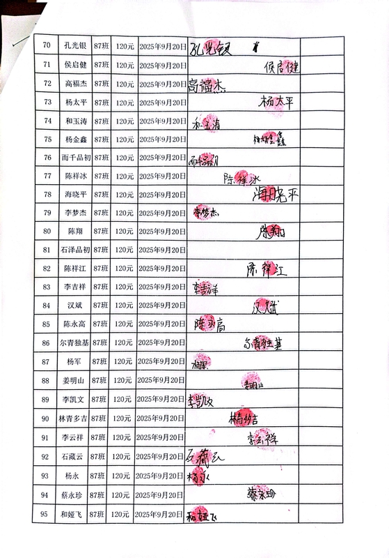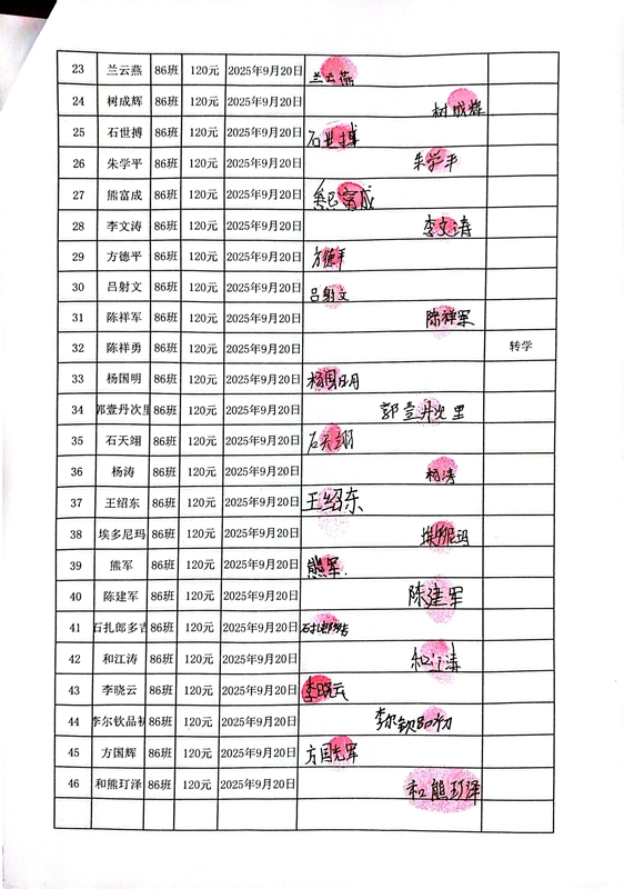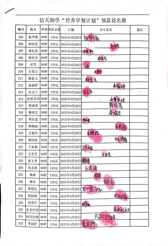 拉伯中学,2025-2026年上学期早餐计划第一次发款签收单