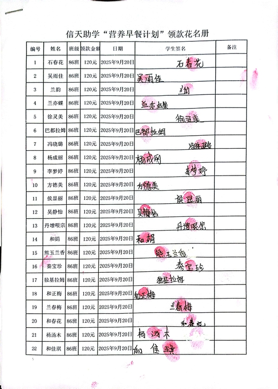 信天公益“早餐计划”签收单2(拉伯中学)86班2.jpg