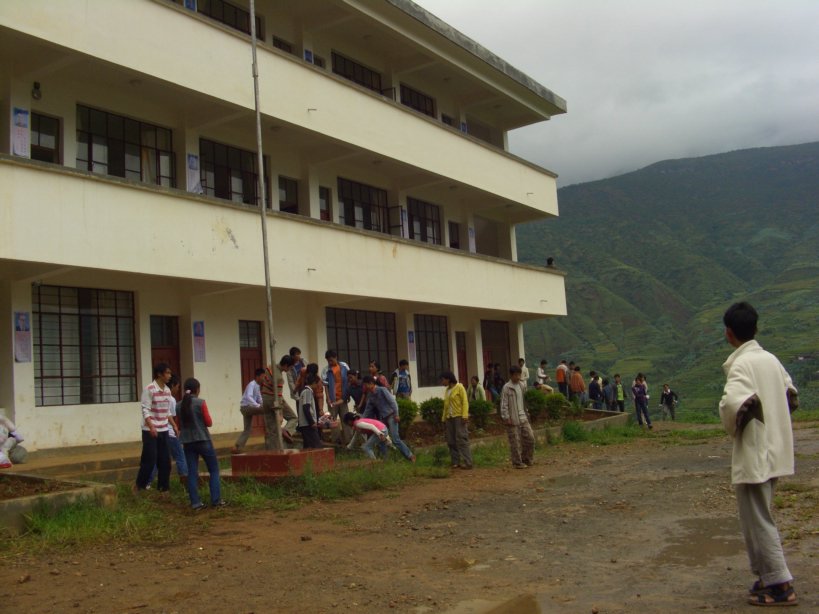 刚来那天的傍晚,从山路往下看,乡上最好的建筑,今天一看,原来就是中学这边