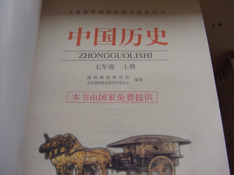 老师走过来对我说:这些课本现在由国家提供了,上面有盖章