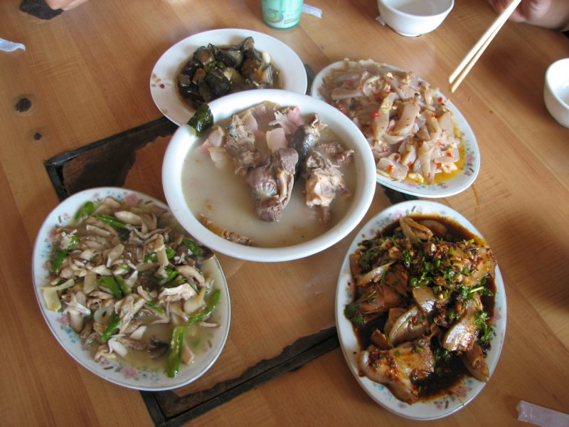 时近中午,又被带去饭饭,又是肉肉肉,老乡用来招待客人的总是最好的。下午要送sissi去红星小学,多吃点