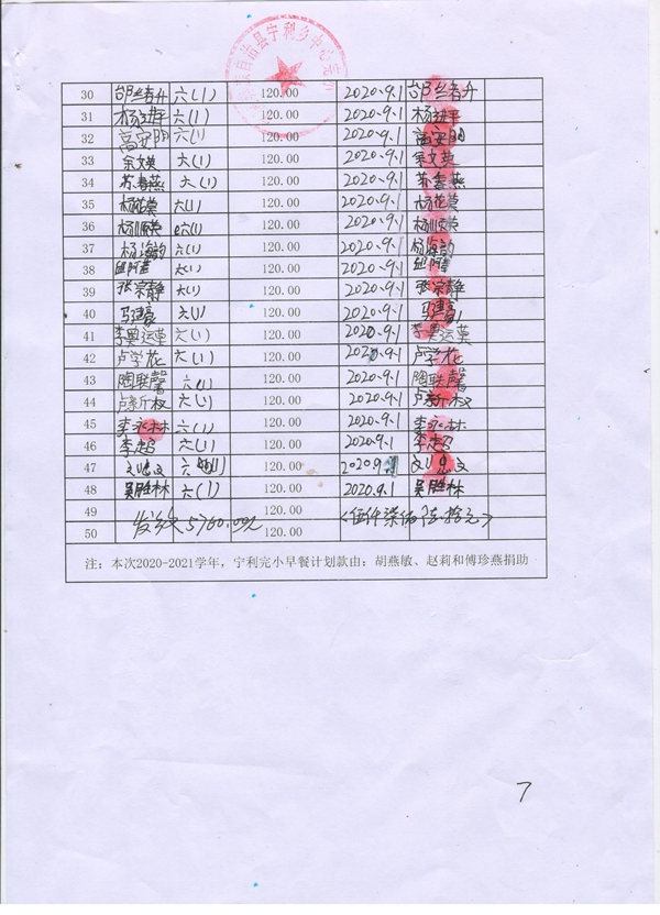 信天公益“早餐计划”捐助款签收确认单7(宁利中心校).jpg
