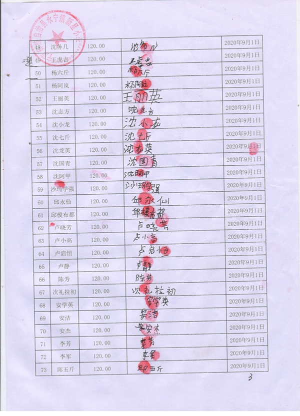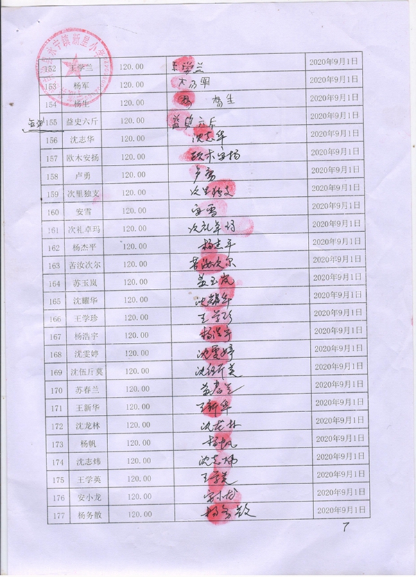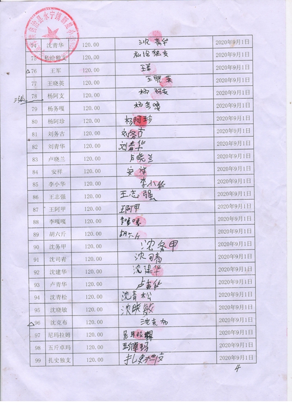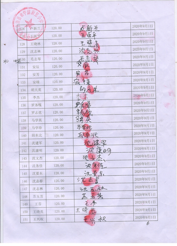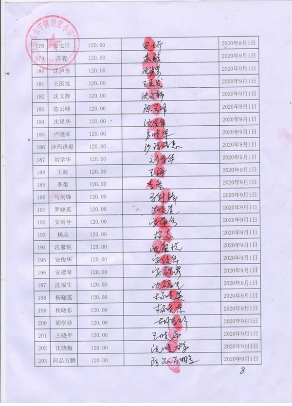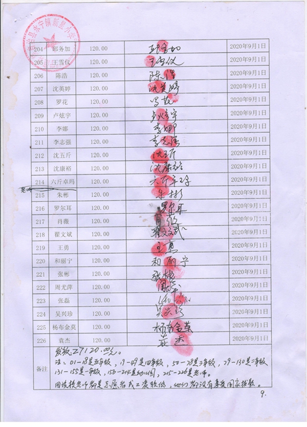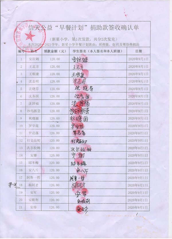 永宁镇新星小学,2020-2021年早餐计划第一次发款签收单