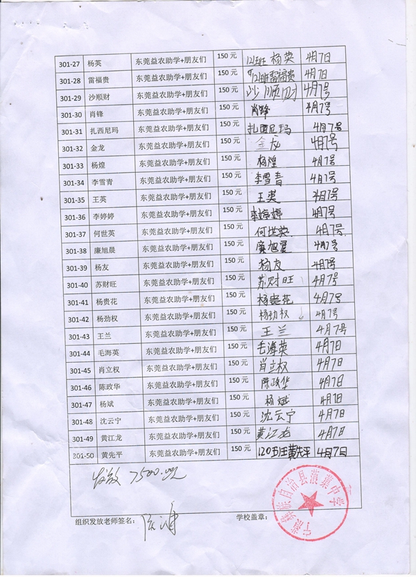 » 第301批受助学生名单( 蒗蕖中学初一50名,东莞益农助学+朋友们)