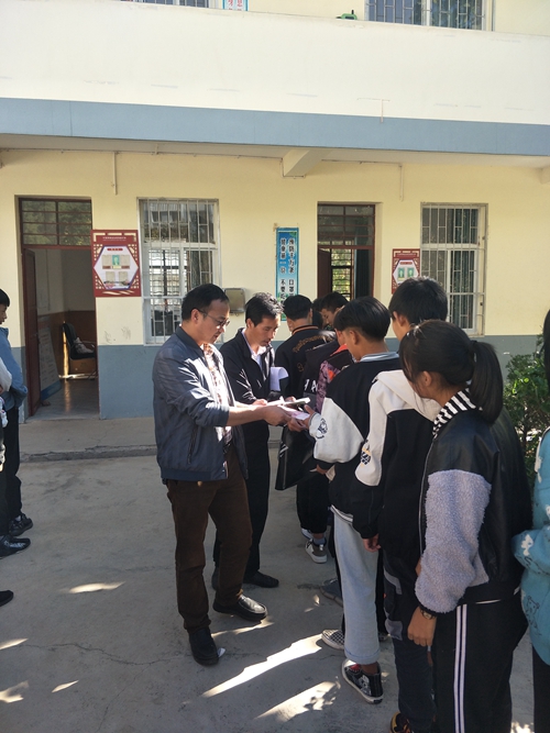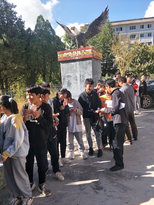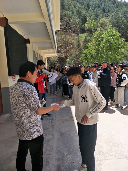 蒗蕖中学,一起发放资助款,学生领款照片