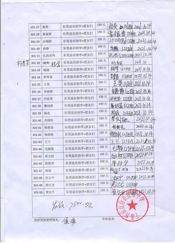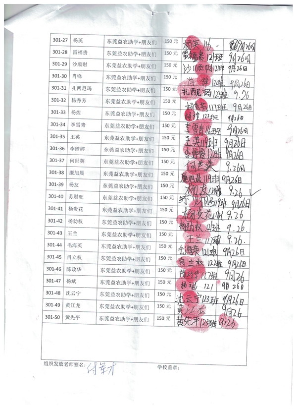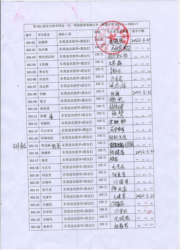 301-32金龙,因中途转学,资助转给杨秀芳。