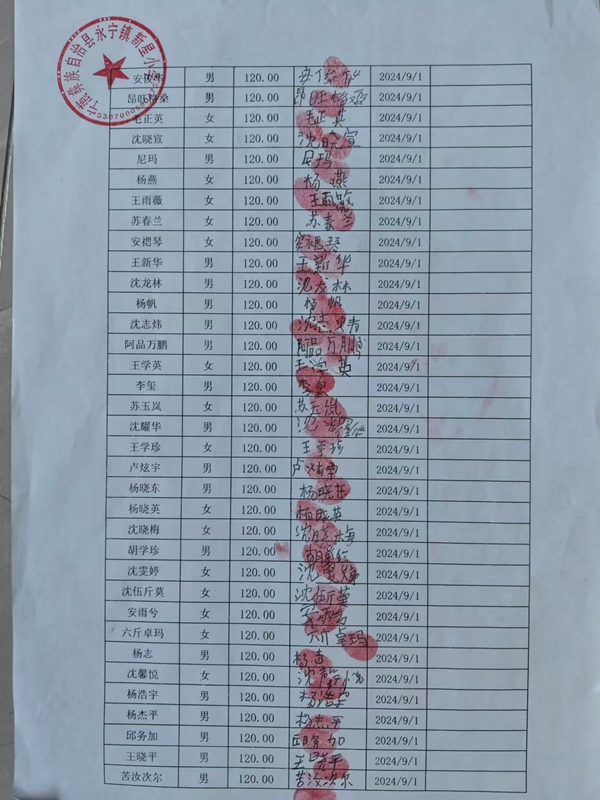 宁利中心完小,2024-2025年上学期早餐计划第一次发款签收单