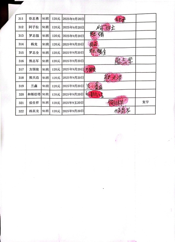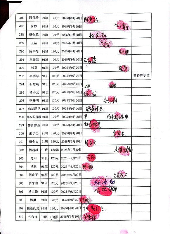 拉伯中学,2025-2026年上学期早餐计划第一次发款签收单