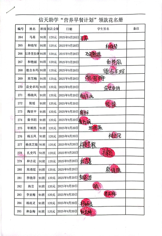 信天公益“早餐计划”签收单12(拉伯中学)91班2.jpg