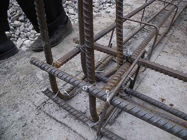 由于做地基时还没有买来钢筋,所以构造柱钢筋没有插进地基额外而是直接同地梁棒扎在一起