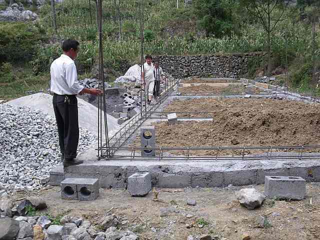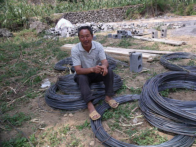 右边第一人为村长,第二人为村支书,面对钢筋的是中心校校长