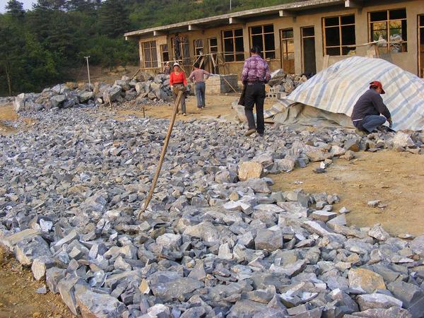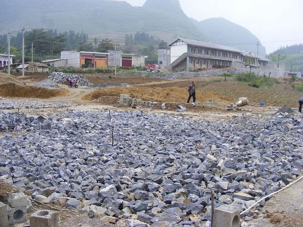 操场用了好多石头,很实在。