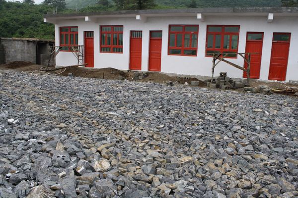 教室已经粉刷了,还差围墙和操场没有做好。
