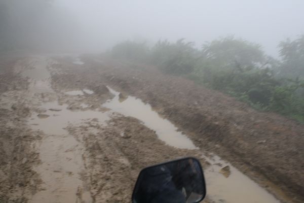 经常下雨,5月25日还下起了雨,道路泥泞倒也罢了,主要是有很多陡坡,有急弯,运输车很难上来。