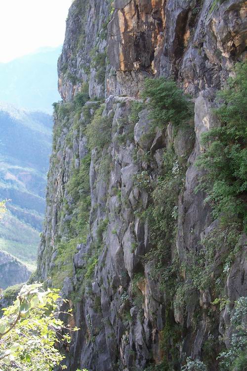 绝壁上行走...中间那条逢就是徒步的路..下面是万丈深渊.