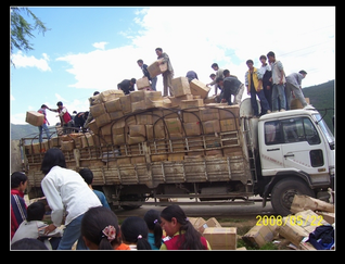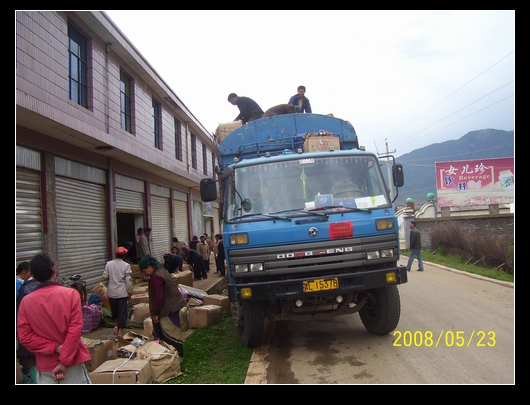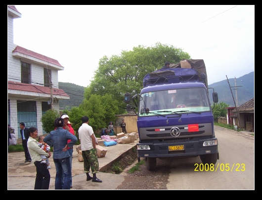1).5月10日,和与天协商,发一车捐赠物资到四川省汶川县龙溪乡.