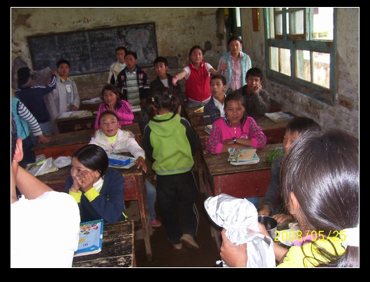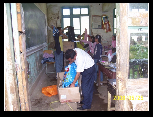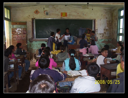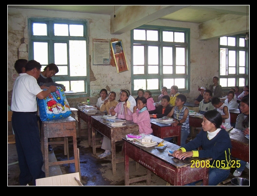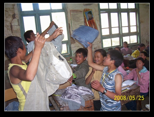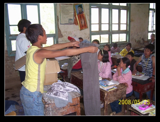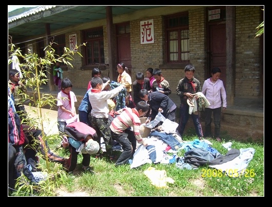 班上分发的方式是,让班委举着衣物,学生谁要就给谁.最后,把多余的又收集在一起,运到大水沟,金子沟等凉山学校.