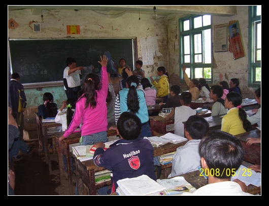 黑板左下角的“自立 自强 自卑”,格外刺目!这些是来自广州的叔叔阿姨哥哥姐姐弟弟妹妹对你们的关心和爱护啊!原谅我不知道怎样才能做得更好:能够倾力帮助又不伤害你们脆弱而敏感的心!