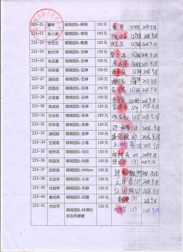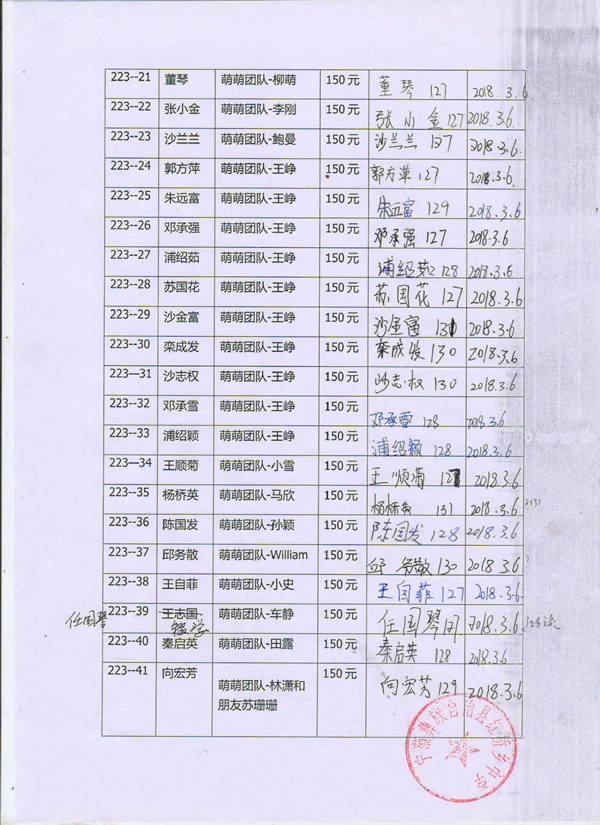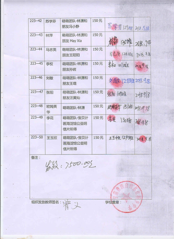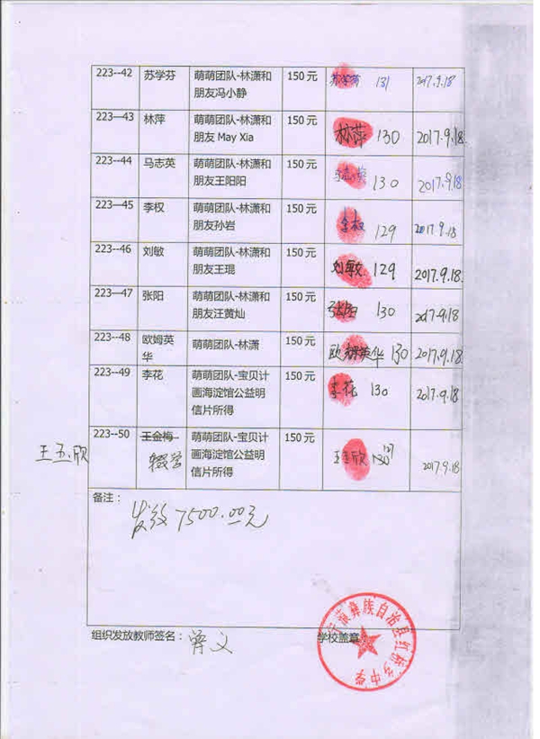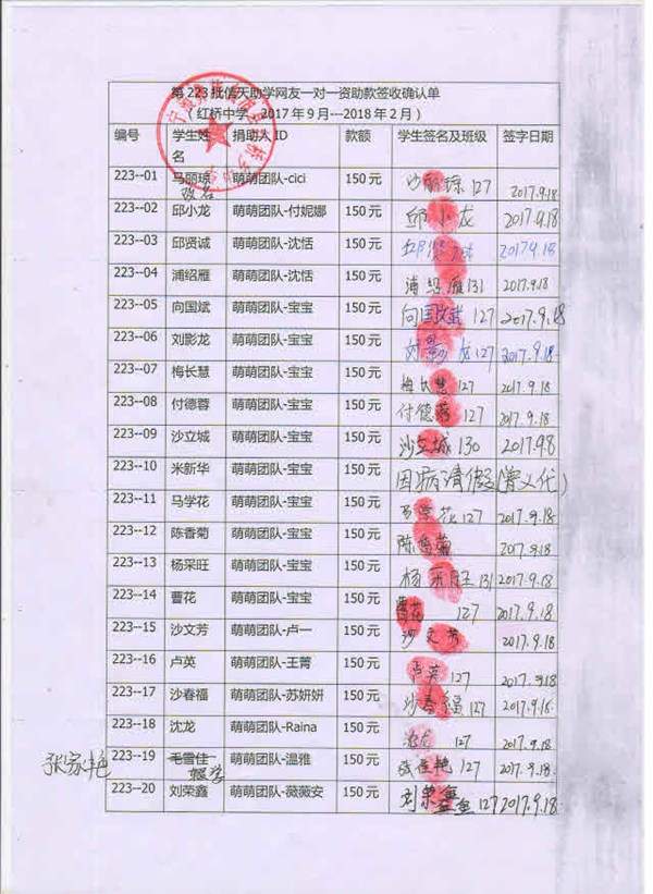 第223批红桥中学(2017年9月-2018年2月)受助生签收单