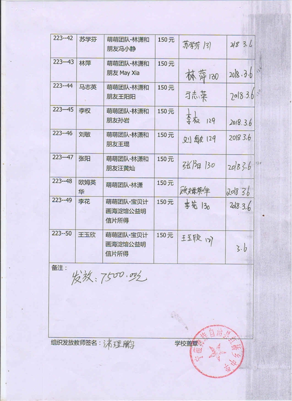 » 第223批受助学生名单(红桥中学初一50名,萌萌团)