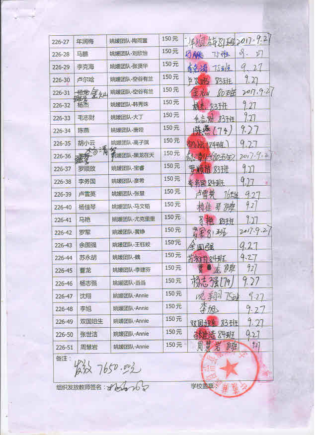 226-31杨鹏,因中途辍学,资助款转给杨龙;