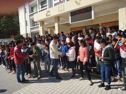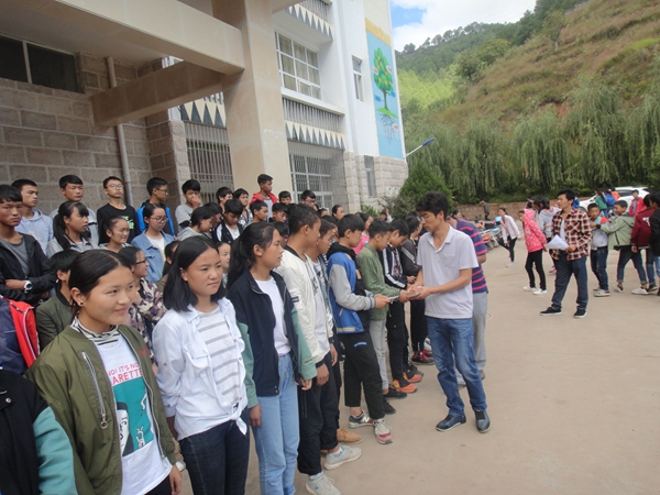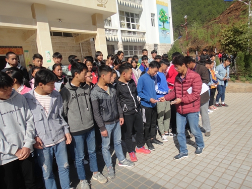 蒗渠中学,一起发放资助款,学生领款照片