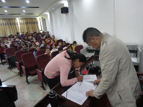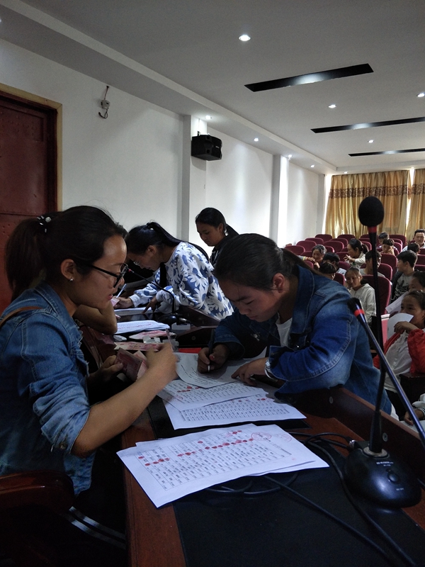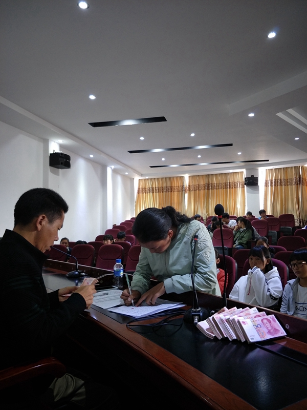 宁蒗民中,一起发放资助款,学生领款照片