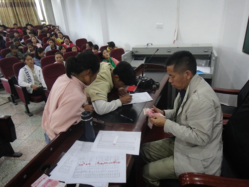 宁蒗民中,一起发放资助款,学生领款照片