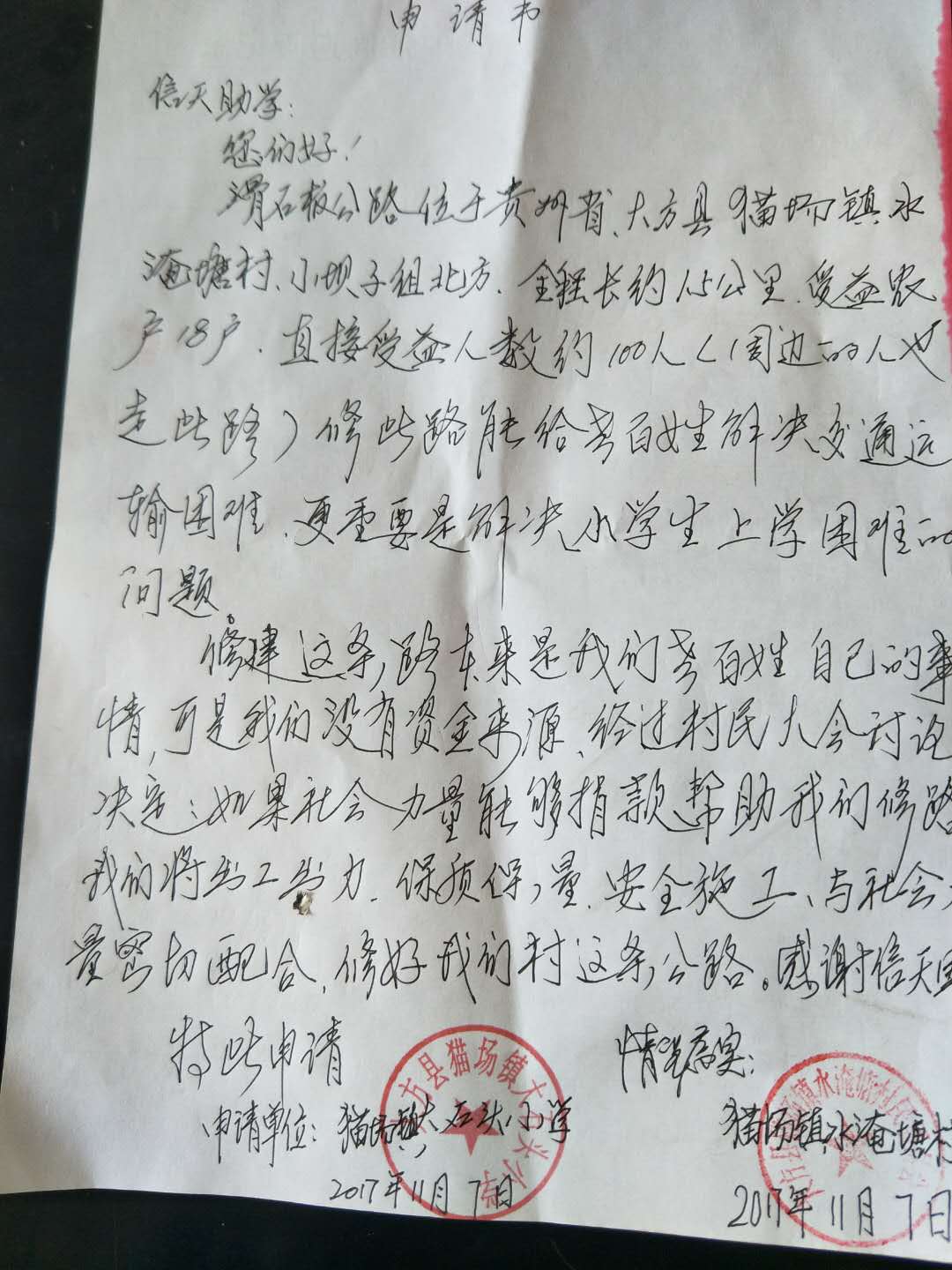 我们决定捐助帮他们修条路。