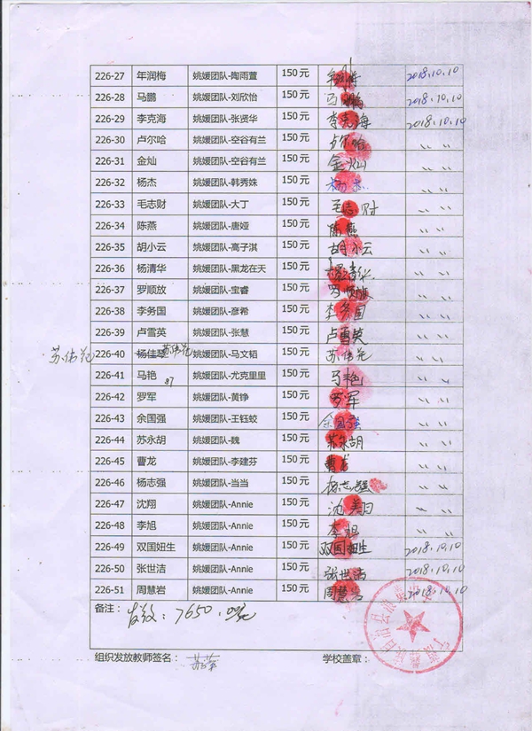 226-40杨佳琴,因中途辍学,资助款转给苏伟花;