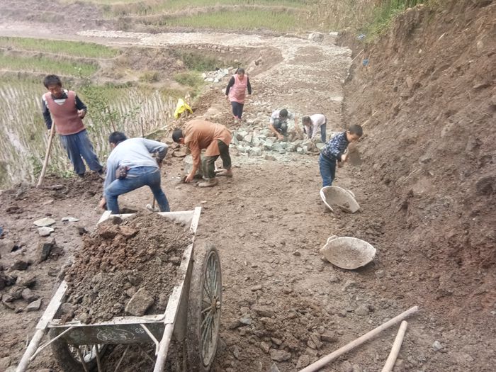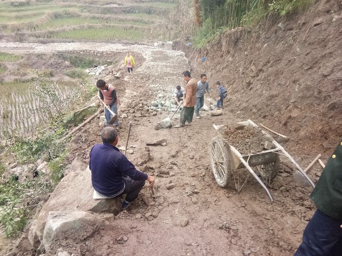 (1)爱心人捐款、村民投工投劳一起修土路;