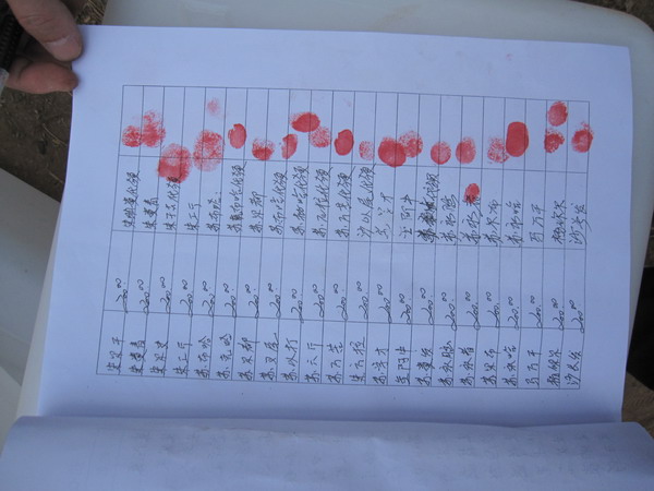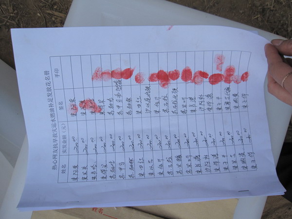 抗旱补助签收单,4页共65户,每户200元,共计13000元。