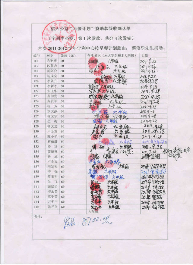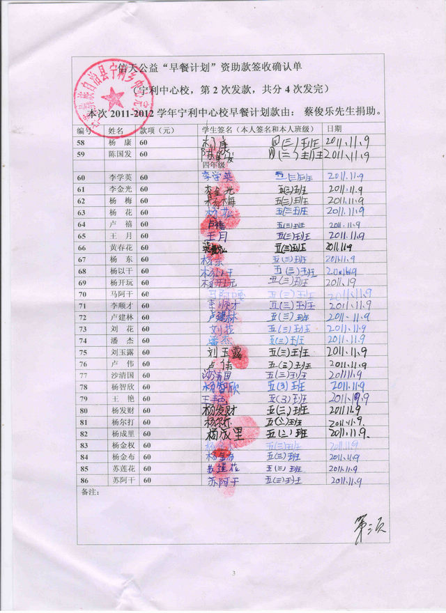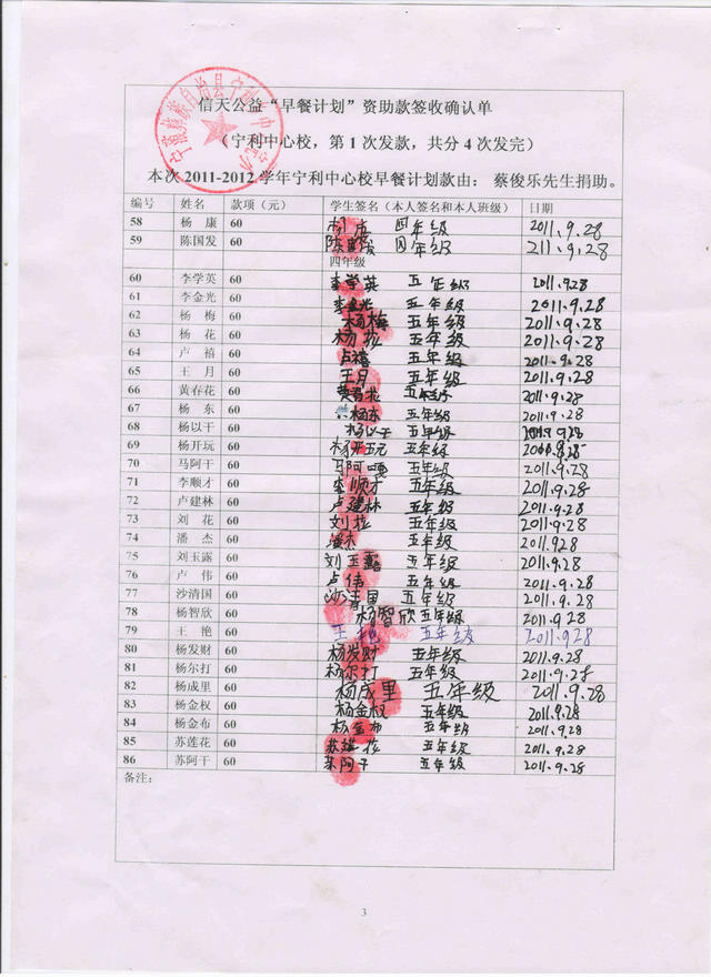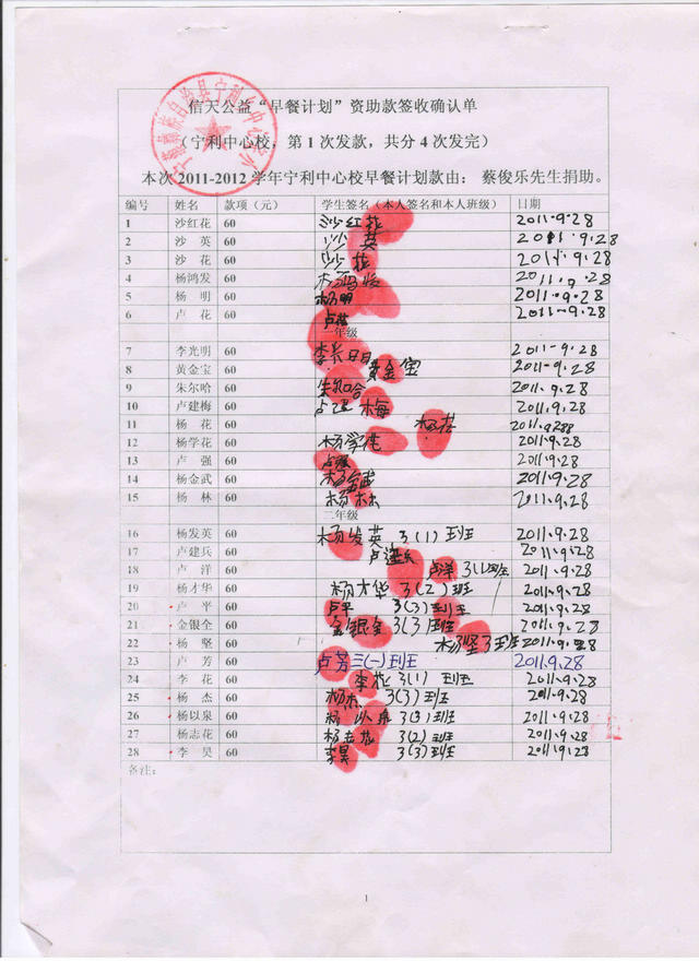 标题: 2011.9-2012.7早餐计划-宁利中心小学(蔡俊乐捐)