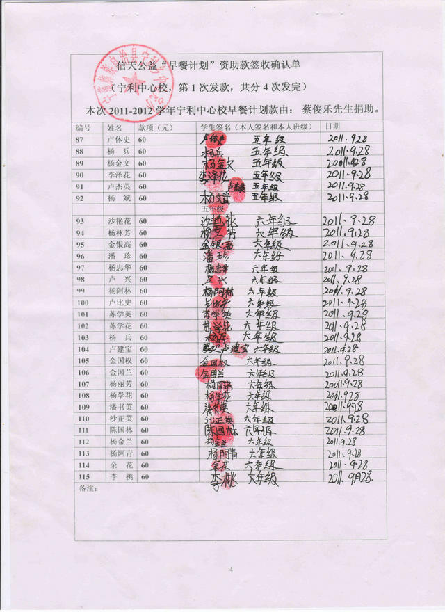 2011.9-2012.7早餐计划-宁利中心小学(蔡俊乐捐)