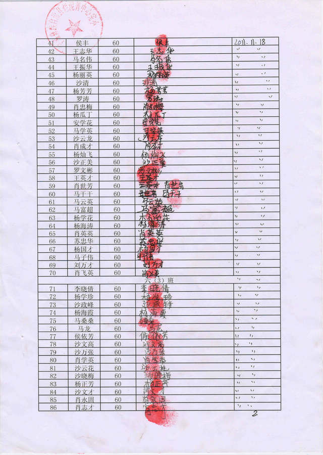 烂泥箐中心校“早餐计划”(2011.9--2012.2第1次)受助生签收单2: