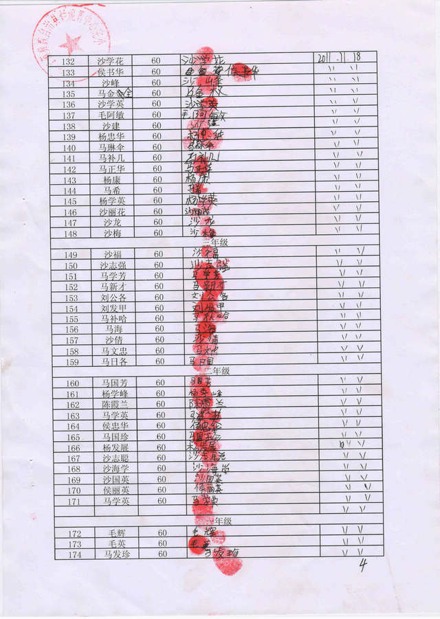 烂泥箐中心校“早餐计划”(2011.9--2012.2第1次)受助生签收单4: