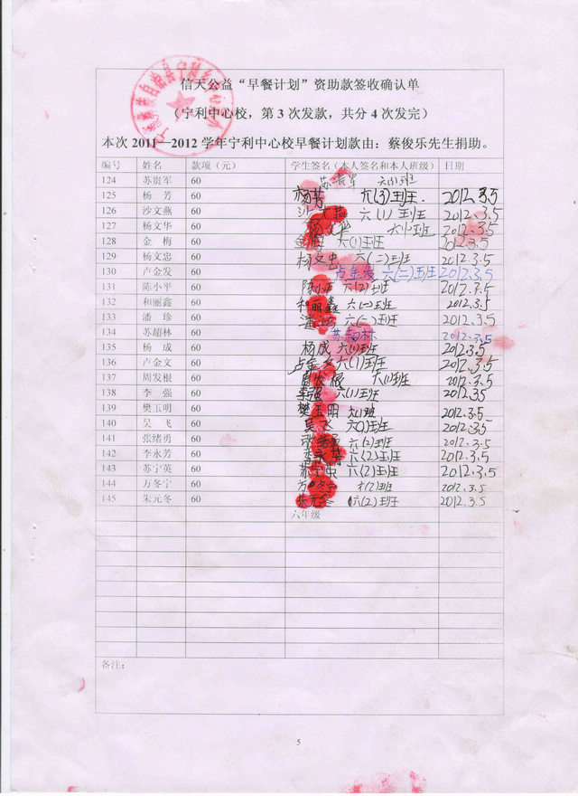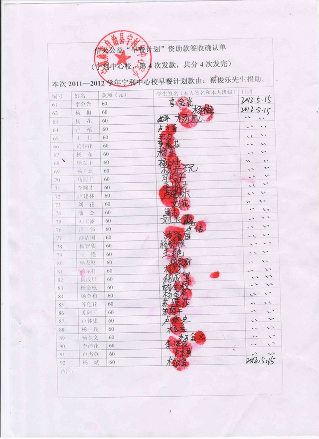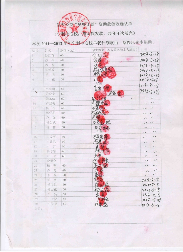 标题: 2011.9-2012.7早餐计划-宁利中心小学(蔡俊乐捐)