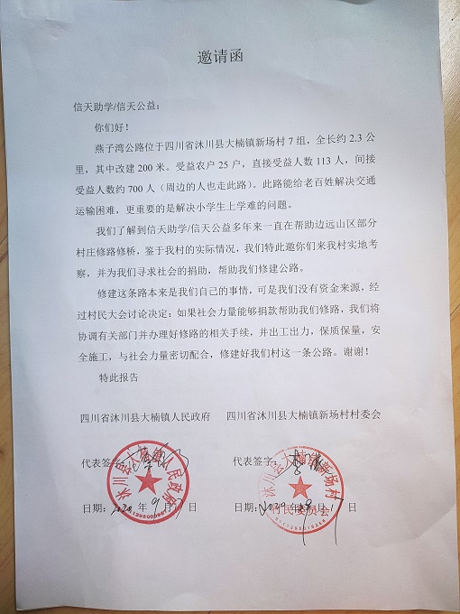 (5)修路预算分好几部分,有挖掘机、涵管、炸药爆破(山崖需要爆破)或者岩石破碎、堡坎、村民义务工、征地等。修路,捐款方不全包,捐款方出一大部分钱:挖掘费用、部分山崖爆破(如有的话)或破碎等。村民出义务工、涵管、征地费、或部分破碎费用,村民小额集资。